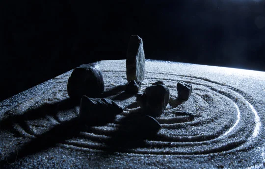 M C Escher Life And Work - Curves and swirls in different colored stones and textures create a stunning effect on a small backyard.